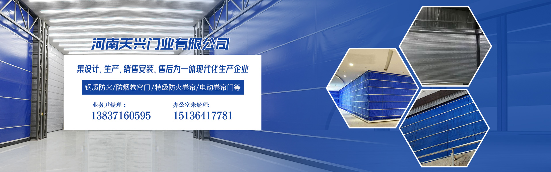 河南天興門業有限公司經過多年的創新發展,已成為河南省集設計、生產、銷售安裝、售后為一體現代化生產企業。公司位于鄭州市西南鄭堯高速軒轅丘出口西 500 米處,緊鄰 S102 省道。公司主要生產:【鋼質防火、防煙卷簾門】【特級防火卷簾】【無機布折疊提升門】【快速卷簾門】【電動卷簾門】【防火門】【防火窗】【擋煙垂壁】等。廣泛...